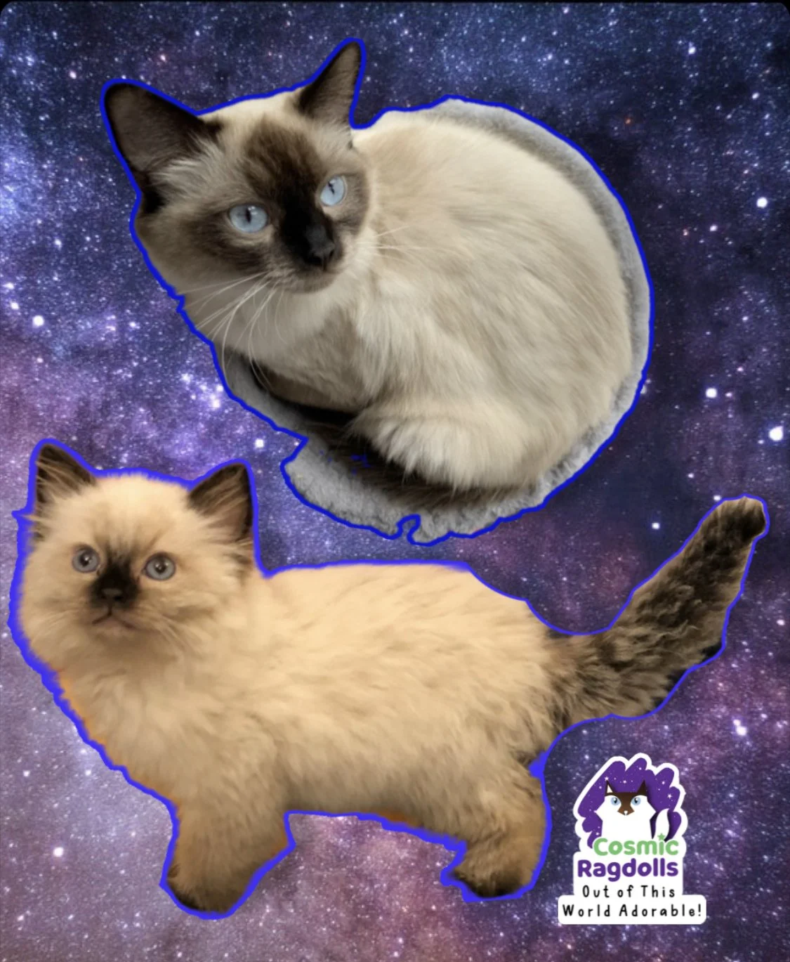Sean is a handsome, loving, intuitive, all around great dad. He is a blue, mitted, sepia ragdoll. His hair is the silkiest fur you will ever feel.